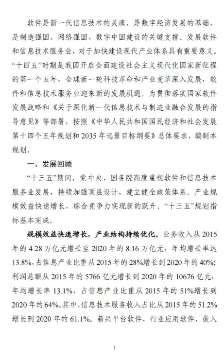 現(xiàn)將《“十四五”軟件和信息技術(shù)服務(wù)業(yè)發(fā)展規(guī)劃》印發(fā)給你們,請(qǐng)結(jié)合實(shí)際,認(rèn)真貫徹實(shí)施。